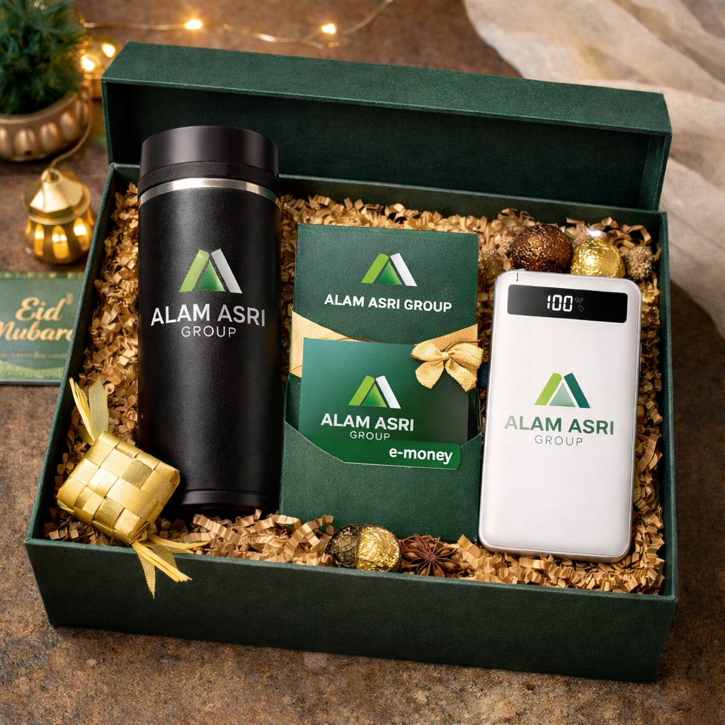 Semua produk dikemas menggunakan hardboard box eksklusif yang kokoh dan elegan, memberikan tampilan mewah serta aman saat pengiriman. Bisa ditambahkan custom sleeve, kartu ucapan Idul Fitri, dan finishing laminasi doff/glossy sesuai kebutuhan branding Anda.